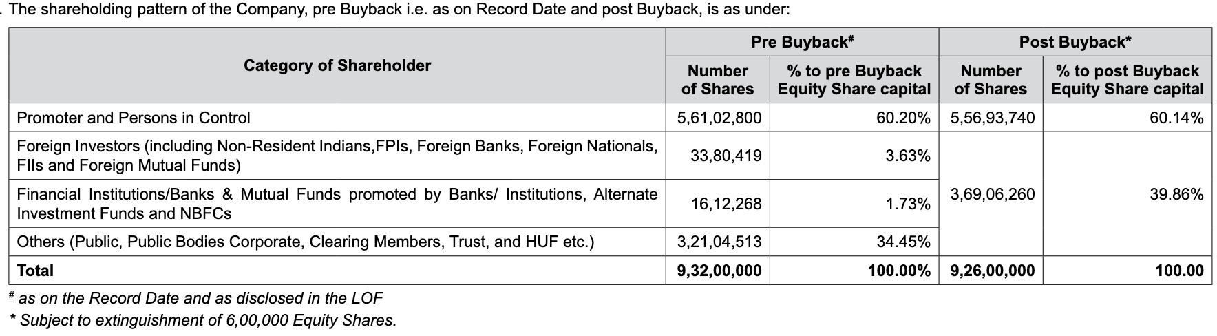 The 2021 buyback the promoters reduced by 1% but the small share holders increased 0.1%. So it looks like it were the promoters who benefited from the buyback.