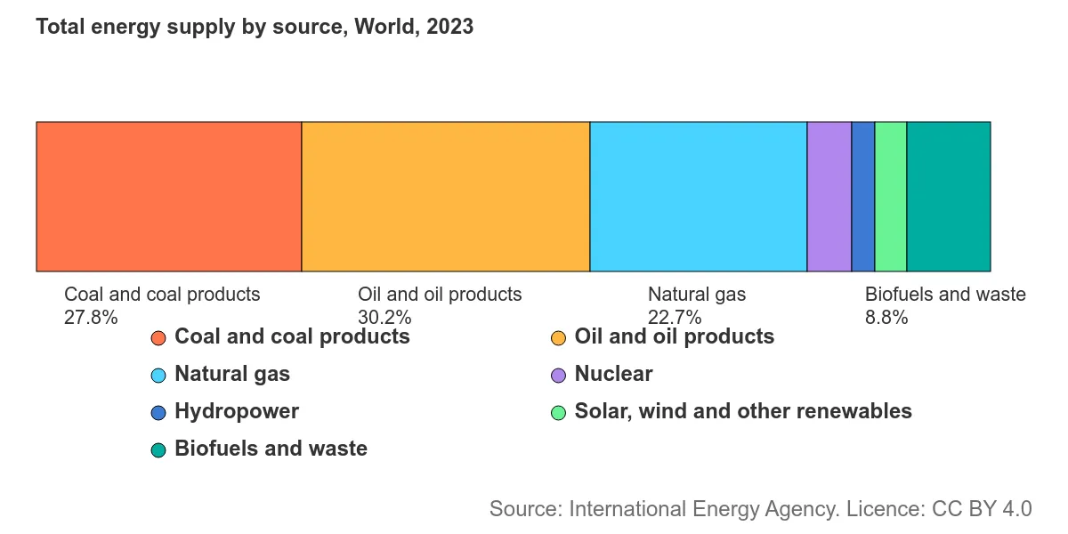 Influenced by Vaclav Smil’s work How the World Really Works and Power Density , I’ve come to appreciate that energy transitions are decadal processes, not overnight revolutions. The shift from coal to oil, for instance, took roughly 60 years to reach 25% of global primary energy supply. Oil’s share peaked at 45% in 1970 and has slowly declined to ~30% today. That decline will continue.