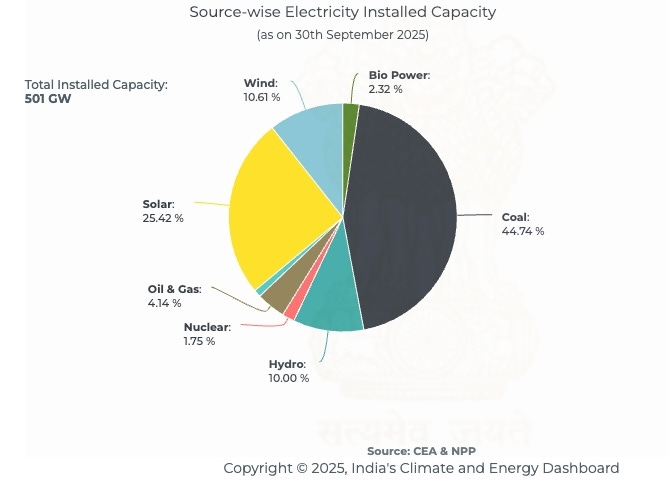 India’s installed power capacity stands at 501 GW as of September 2025.