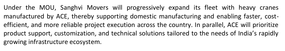 - Will this help ACE to break into the heavy tonnage cranes (crawler/truck) (KATO tieup) where it does not have much heft?
