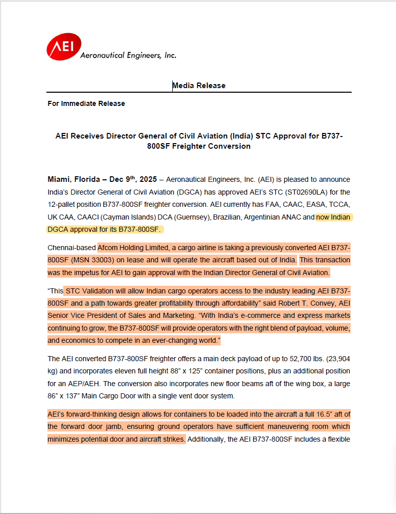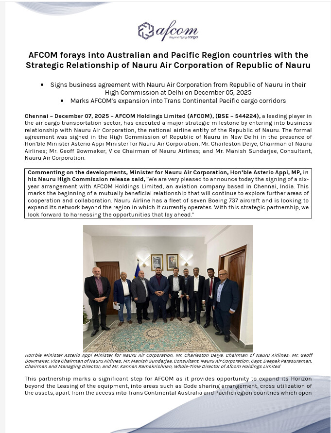 The addition of wide-body aircraft unlocks access to new geographies at service speeds that are currently unavailable within the industry. This expansion will enable Afcom to commence direct operations from India into Korea and Japan, while critically extending connectivity to West and South Africa. The company’s long-term ambition is to serve the entire trade corridor spanning Japan and Korea through India and onward to South and West Africa. This region is widely regarded as one of the fastest-growing global trade belts, with India uniquely positioned as the natural geographical hub between the Far East and Africa.