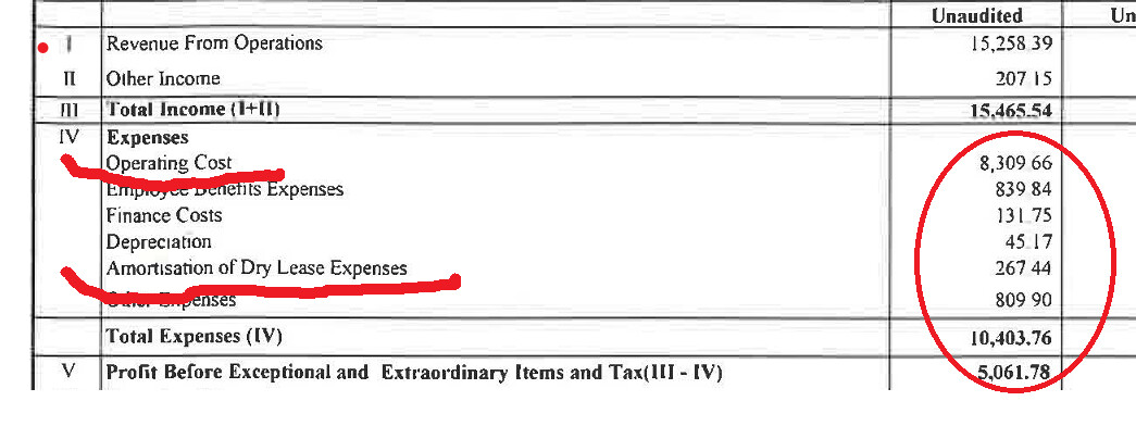 Anybody knows how much are the future committed lease rentals the company is liable for? The Amortization of Dry Lease Expenses (Rs.2.67 crore) appearing in the P & L pertains to the pre-operative period. Lease rentals for the two aircraft are being clubbed with other operating expenses such as fuel etc. and shown in a single line item as Operating Cost. This will now go up in Q4 with the third aircraft joining the fray. So I am not sure how to analyze this. I am surprised even the credit rating report does not mention or consider this (i.e. the future committed lease rentals).