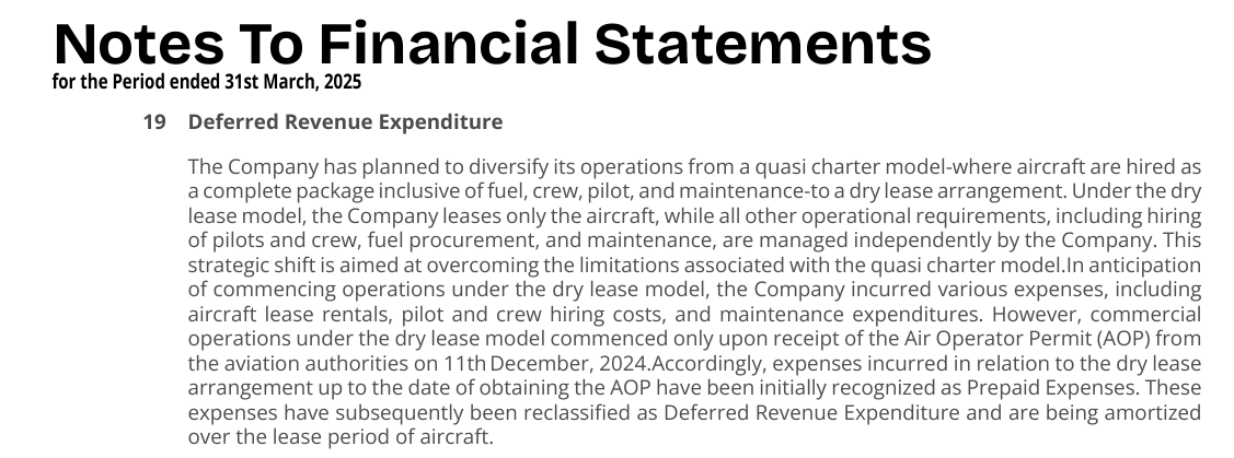Operating Cost for Q3 FY26 was Rs.83 crore and assuming this same ratio, Aircraft Charter Fee should come to 80 % of this i.e. about Rs.66 crore. This is much higher than the USD 200,000 per aircraft per month mentioned by the management in the video above. This still needs clarification. I think we have to wait till the FY26 Annual Report to get better clarity on this.
