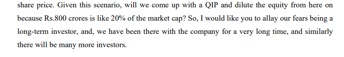 See, the problem is equity is not that much of a drag compared to Debt and raising debt is still a possibility.