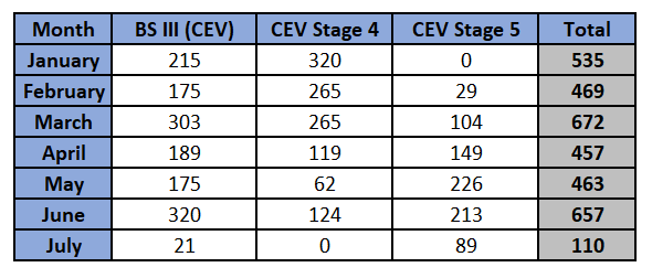 @drjpatwa - When I check in Parivahan, the CEV STAGE IV count is 124 and CEV STAGE V is 211 for June, which I think is good progress.
