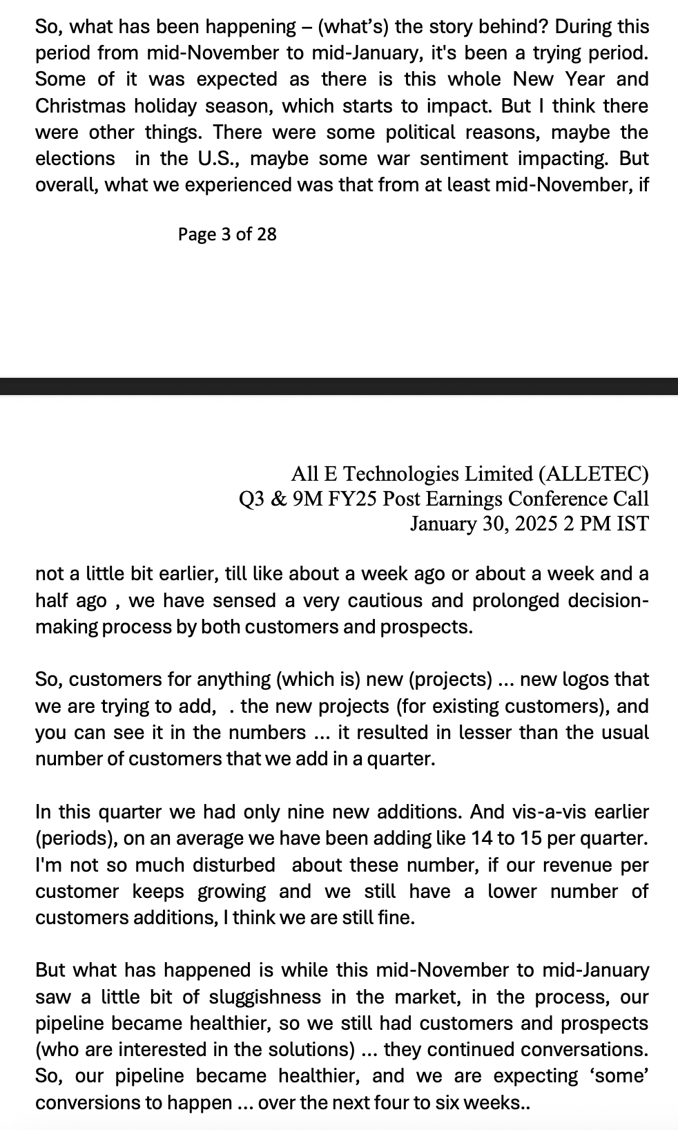 I think revenues being steady QoQ is a good news when management had highlighted a slowdown in the previous concall. I am pleasantly surprised with the numbers.