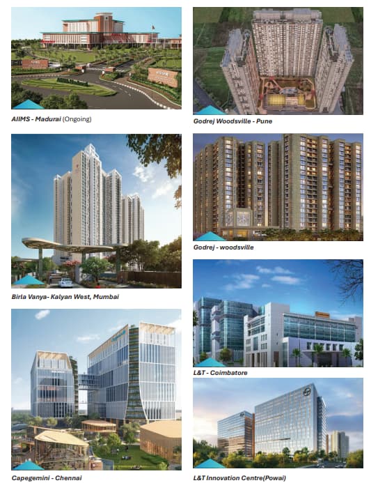 Diversified Orderbook: The company’s order book is well-diversified across various sectors, including healthcare (AIIMS Madhuri), commercial (Innovation Campus), major infrastructure (MAHSR), corporate (Capgemini Chennai), residential (Tata Serein, Thane), and port infrastructure (Mumbai International Cruise Terminal), reflecting strong credibility and presence in marquee projects.