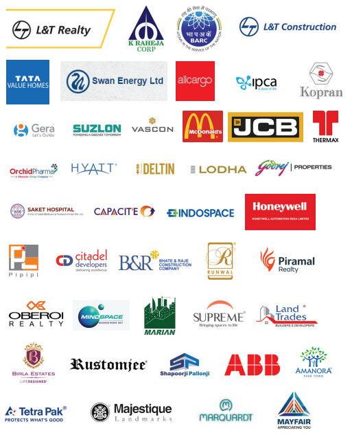 Clients include L&T Group, Lodha Developers, Hyatt, Godrej Properties, Oberoi Realty, Piramal Realty, McDonald’s, JCB, Thermax etc.