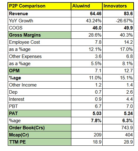 I have done a quick P2P between the two companies and Aluwind execution has been far superior and inline with order execution timelines. Game largely is how efficiently can you utilise your inventories, execute projects early or on time and dedicate the same resources for the next job.