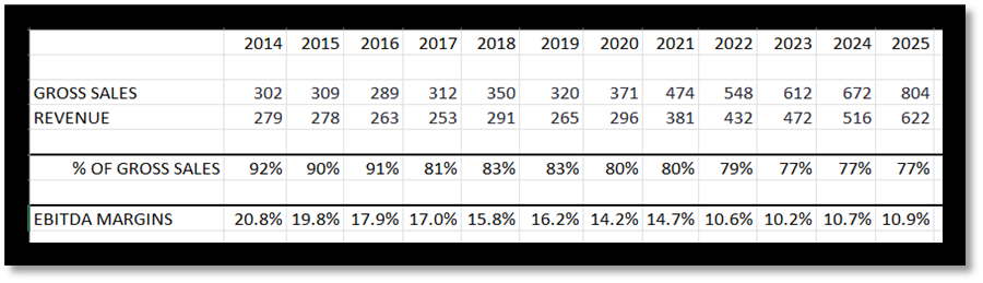 Ebitda margins have declined as the rate of discounts have increased. Discounts have Increased in proportion to advance bookings.