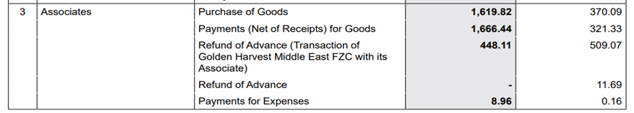 Golden Harvest Middle East FZC (GHME; 75% subsidiary) and associate company Amarak Chemicals FZC (Amarak; 49% of equity stake held by GHME). In FY23, company opened a unit at Fujairah
