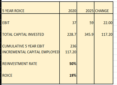 (Return on incremental capital employed has been very healthy over last 5 years)
