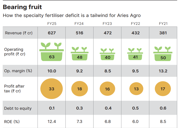 Aries Agro makes high-yield products like chelates, water-soluble fertilisers, crop-specific blends, etc., that remain outside India’s subsidised group of bulk fertilisers. What this means is that Aries’ specialty products aren’t shackled by price caps or subsidy distortions. They enjoy better margins, their market is nascent and their import bill still looms large.