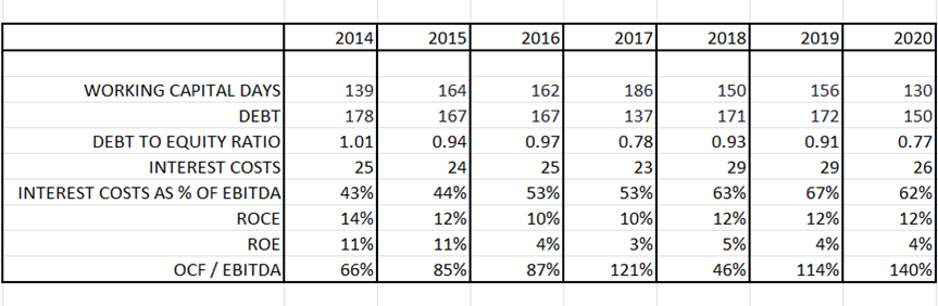 As you can see, ROE was abysmal, finance costs were taking 2/3rd of operating profits and Balance sheet was leveraged.