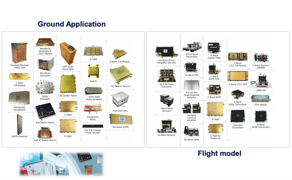 - Flight-qualified RF sub-systems (filters, amplifiers, receivers, antennas) flown on ISRO satellites (RISAT, GSAT, Cartosat, Resourcesat, Megha-Tropiques).