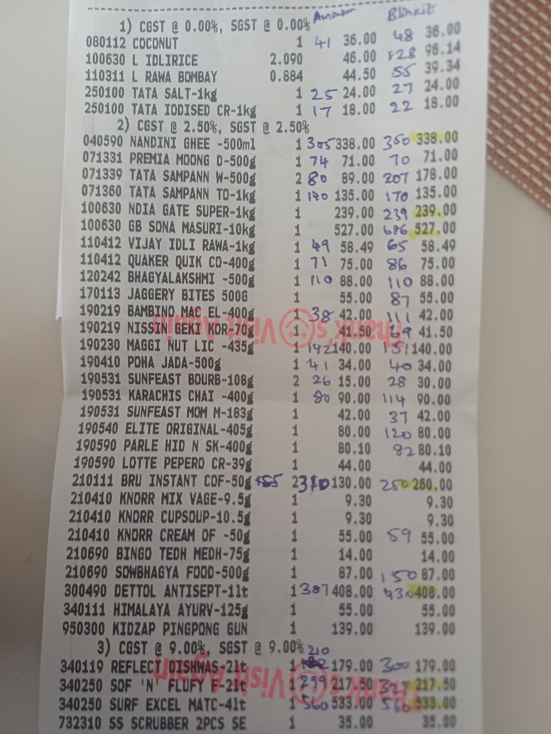 Though recent dip in prices concerned me a bit, the critical question i had is whether the price offered by quick commerce giants could dominate dmart’s. Was able to compare dmart prices against amazon and blinkit for the commonly available products. For the products that were not directly available in the quick commerce platform, the cheapest available products were taken as proxy.