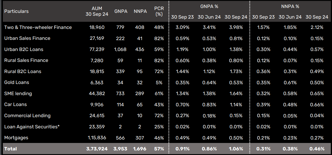 Breakdown of company’s AUM ( loans ) as on 30 Sep 24 -