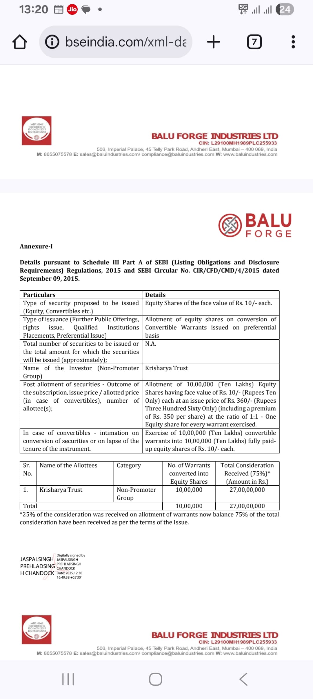 - Transparency Issues: While Balu Forge’s management has been transparent about their expansion plans, concerns about capital efficiency have been raised by market observers