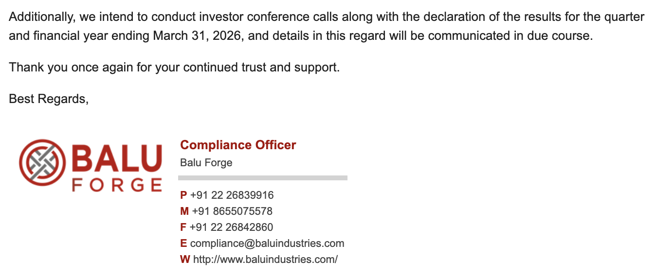 FWIW, I asked the compliance team at Balu about concalls, and they are saying they will do one along with the results for Q4-FY2026