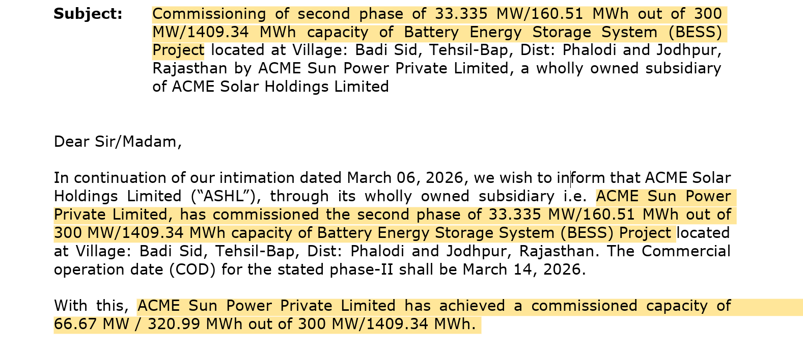 So RTC & FDRE projects have strong competition from stand alone Solar plus BESS, which Discom’s are opting for.