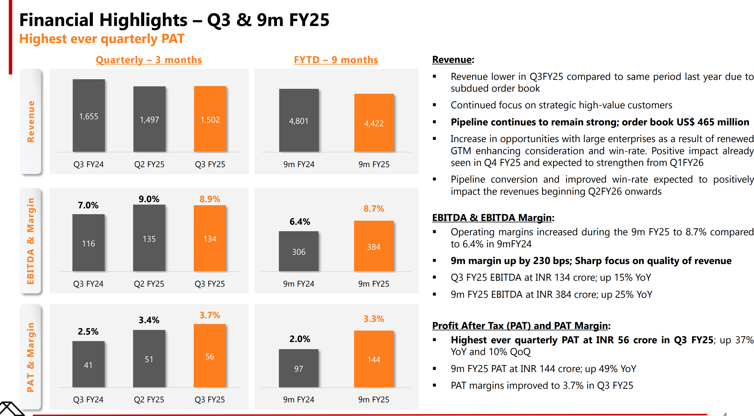 We remain optimistic about sustaining the profitability momentum. We are confident of remaining within our stated EBITDA and PAT guideline range for the year. [Q3FY24]