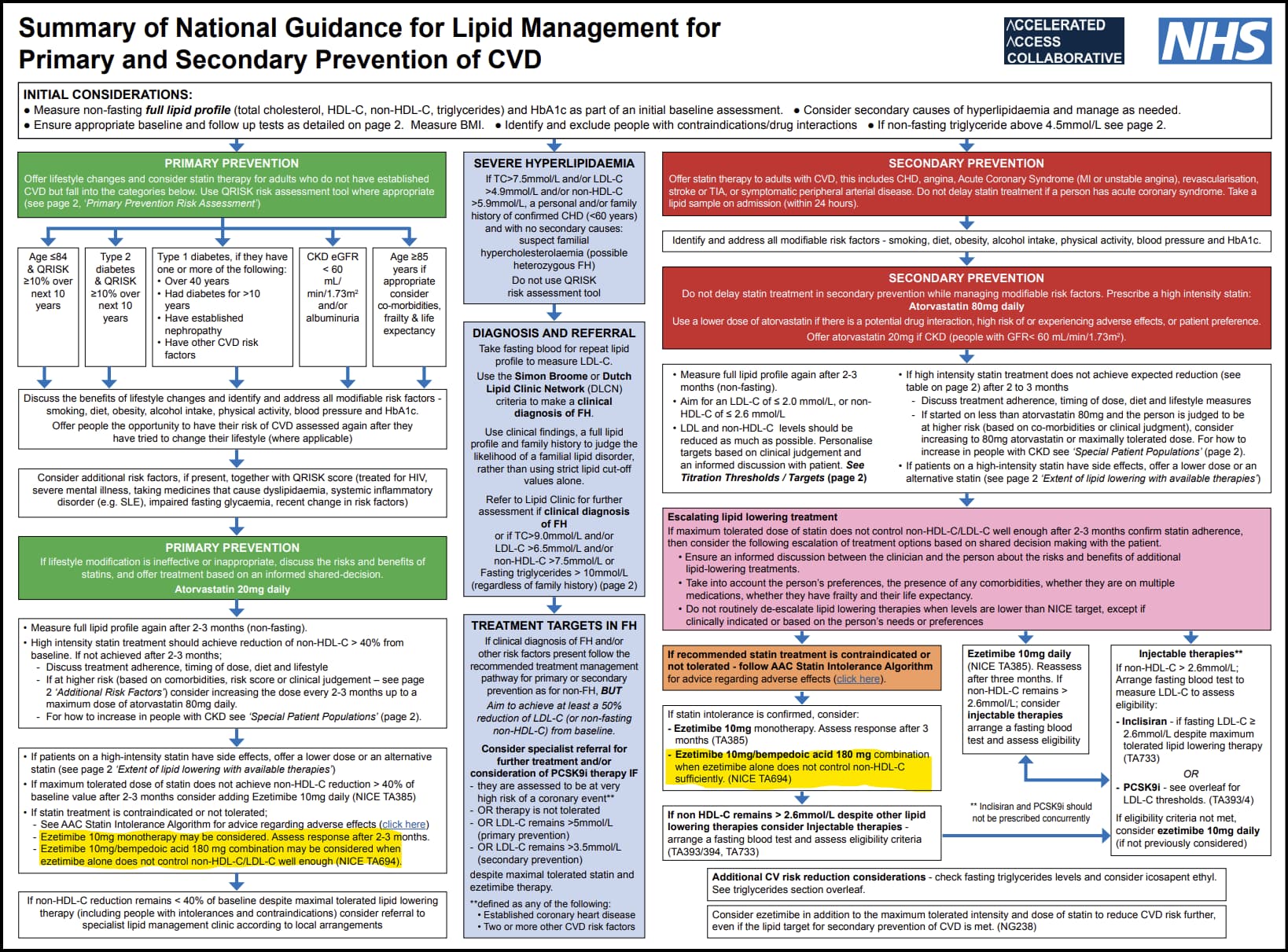 Note Bempedoic acid and Ezetimibe are given both as primary prevention (those without CVD) and secondary prevention (those with CVD).
