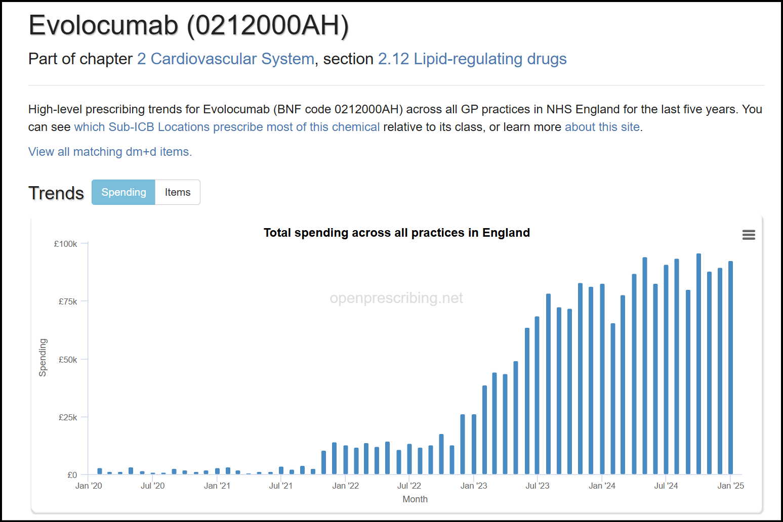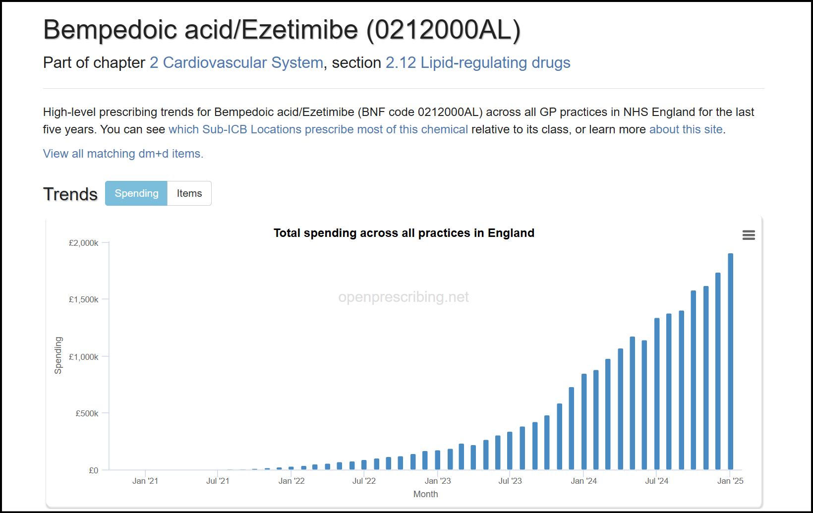 Access the dataset here: Bempedoic acid: BNF Code 0212000AK | OpenPrescribing