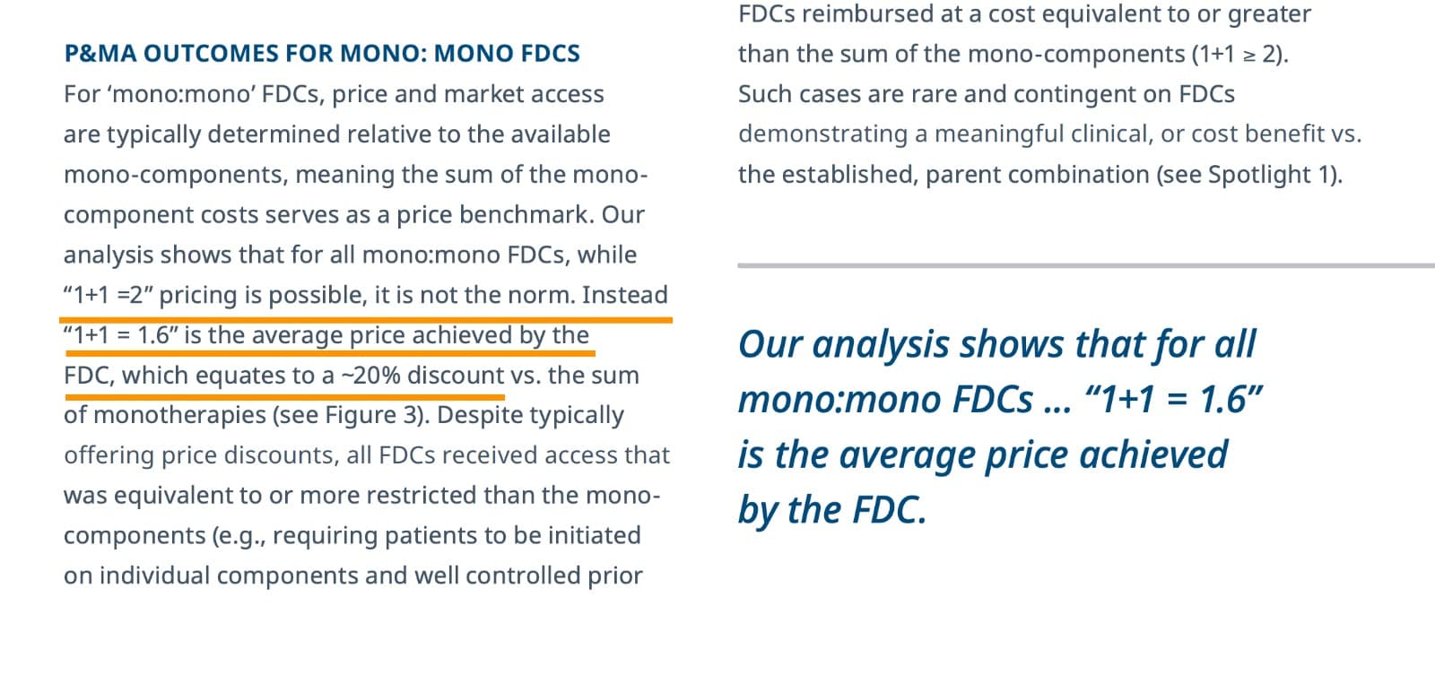 This gives an idea of how a fixed-dose combination is priced. when two mono therapies are combined. the price you achieve for FDC is 1.6 and not 2 (but in this there is a catch - that is that both should be branded drugs)
