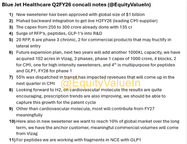 To myself, they may see steady compounding growth in FY26/27 with a probability of much better results from FY28 onwards once Vizag facility scale-up starts after Phase 1 capex for same