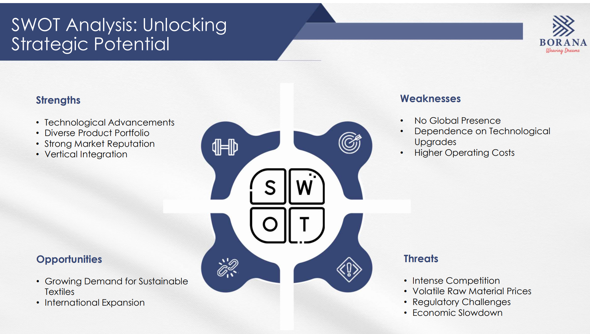 Borana enjoys EBITDA margins of >20% which is quite good in this industry. I am yet to do the valuations. Will share once I do those calculations along with a bull, base and bear case scenario. Below is the SWOT analysis from recent ppt.
