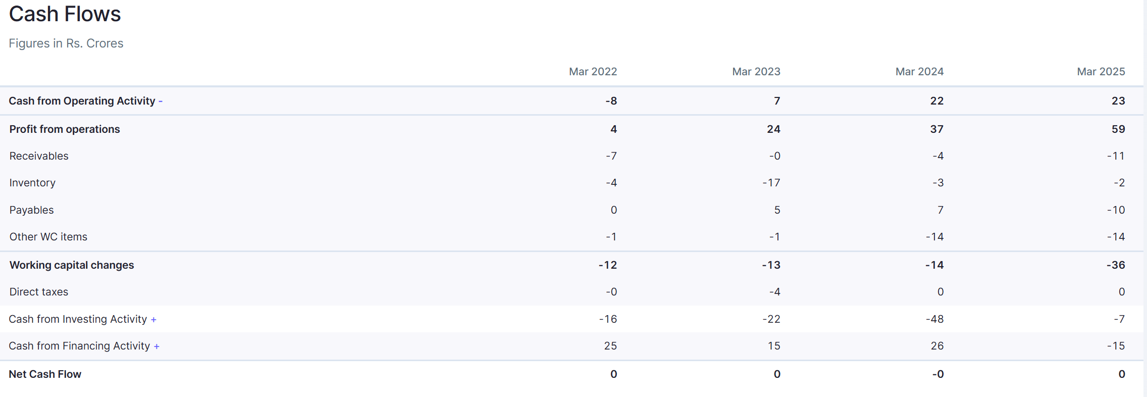 Financials: I am presenting the screener screenshots for P&L, Balance sheet and Cash flow statement.
