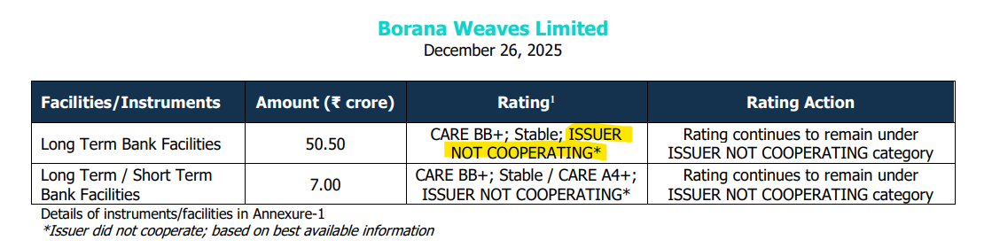 I was going through the latest credit rating by care edge released in Dec 2025. I found a big red flag of non-corporation by the firm.