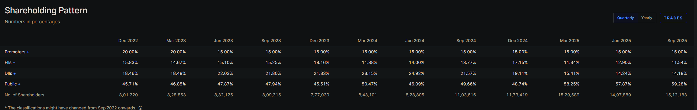 recent shareholding as of 30th sept shows public shareholding has reached an all time high which makes me slightly concerned. (disc : heavily invested)