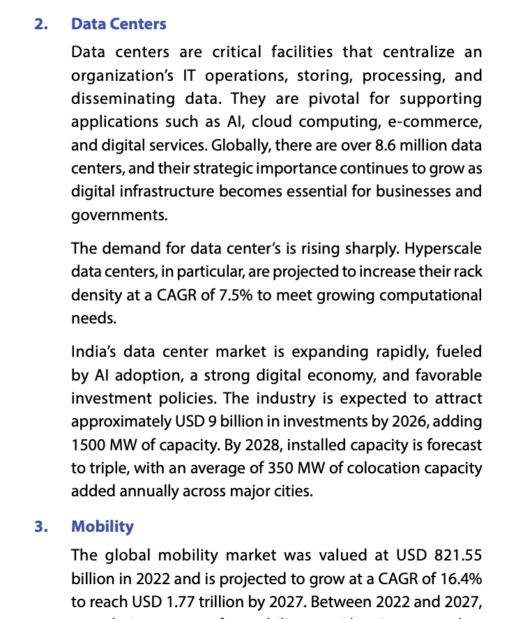 They initially said investment in data center alongside geospatial and technology solutions domains and then later said they are not going to do it.