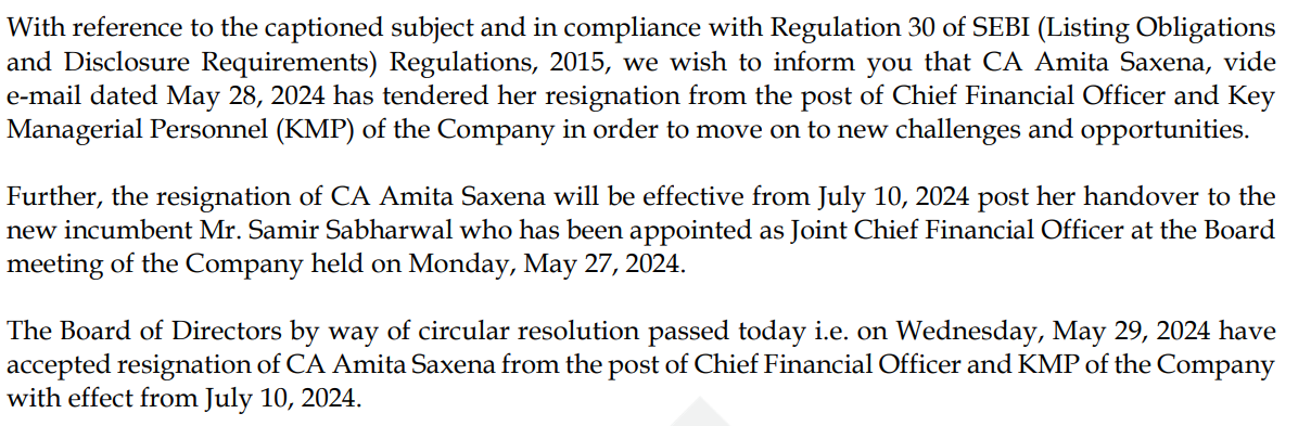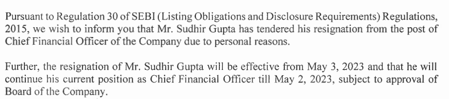 My understanding is appointment of him as whole time director has got stuck in some procedural/technical clarification.