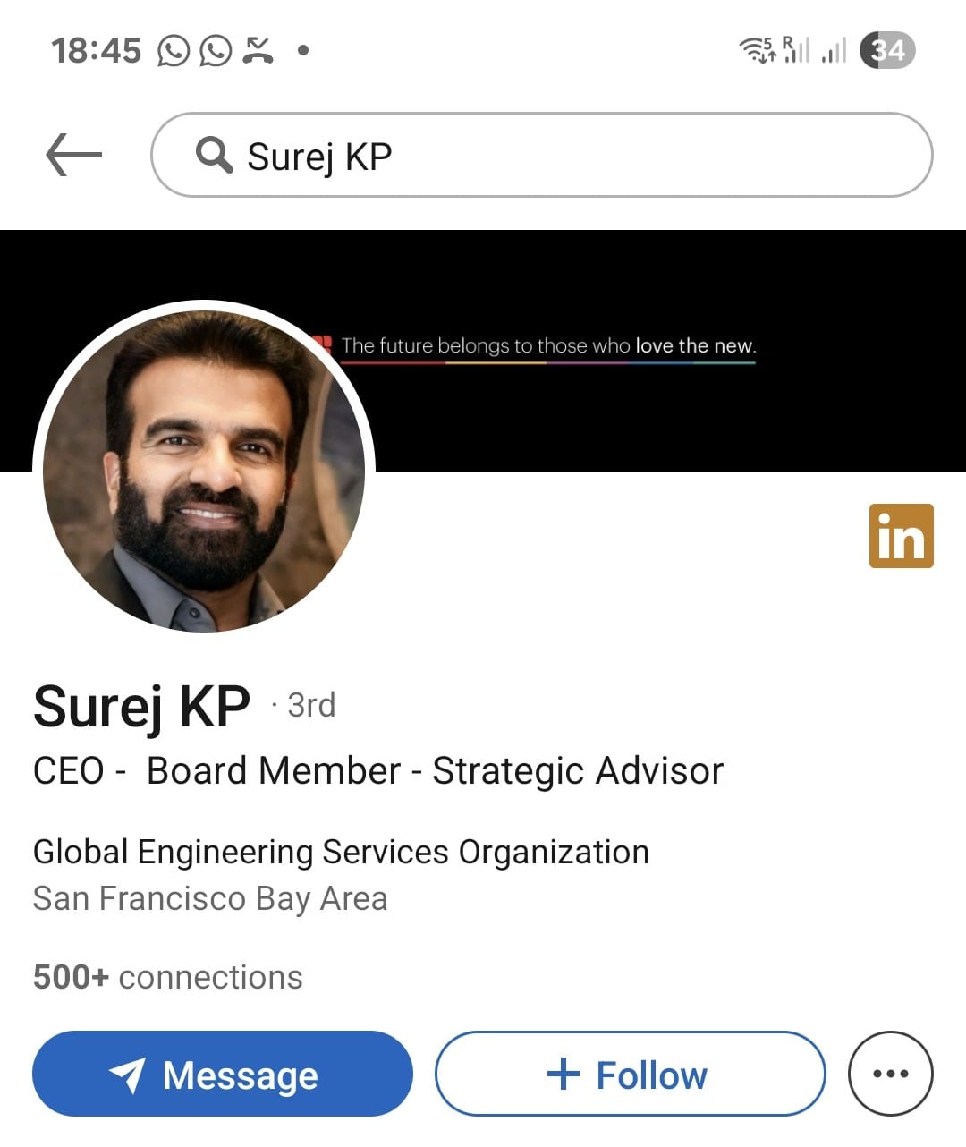 The reason Surej hasn’t yet disclosed the company name on linkedin is probably because Kamat is still CEO. He did join the last call though, so I think there’s no speculation about him taking over as CEO.