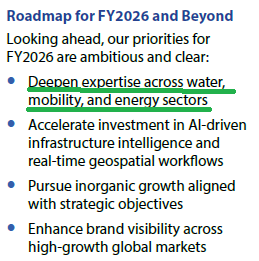 - The company is actively identifying targets for inorganic growth to expand in existing domains and has mobilized almost USD 28 million for M&A in geospatial and engineering services.