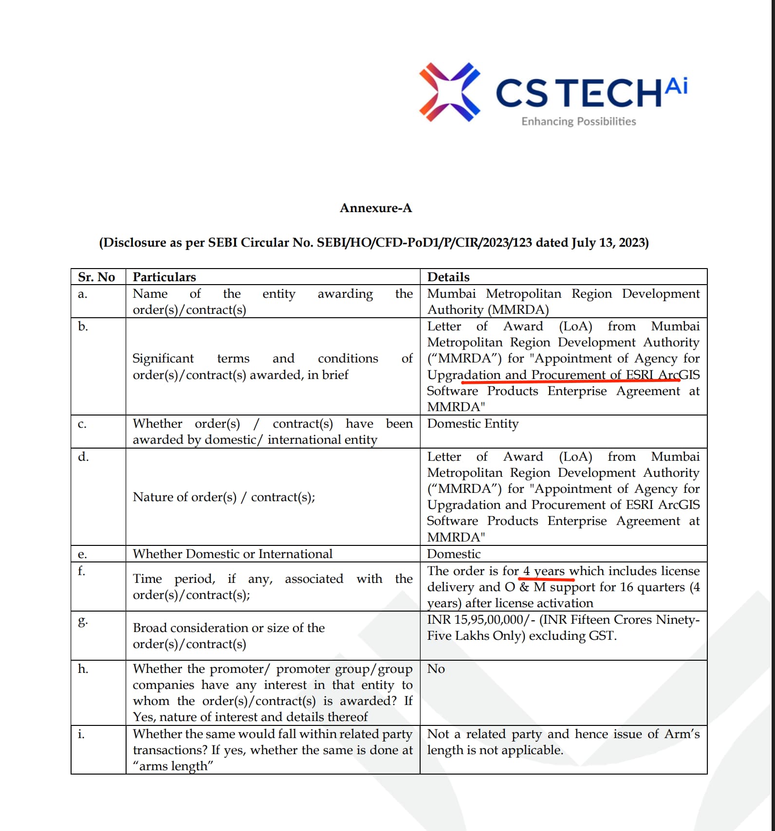 - The company secured a new MMRDA contract worth INR 115 crores for system integration.