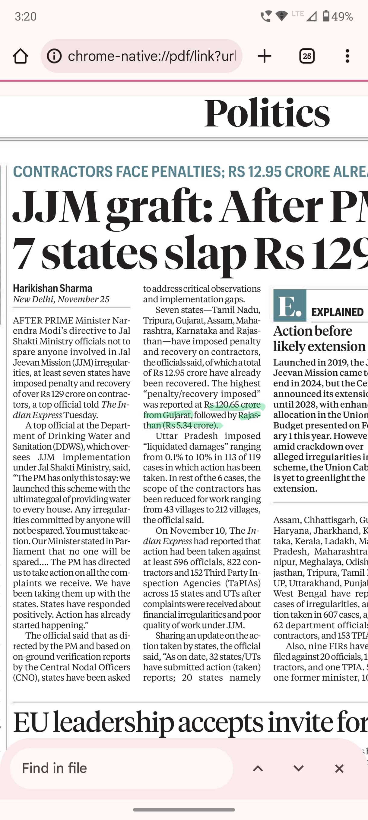So, I think presently, we have been focusing on getting efficiency benefits within the project which we are handling. Some of the projects which we have also used, I would say, also a little bit application has also been made in the river linking project, in the DPMS project. Some of the