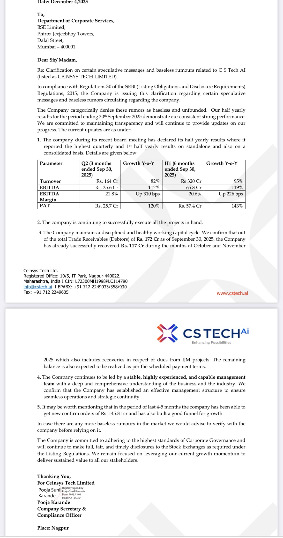 They are probably referring to rumours that the company is going to write of JJM receivables hence they have highlighted the fact that they have started recoveries and already recovered 117 out of 172 Cr as conveyed in the latest conference call.