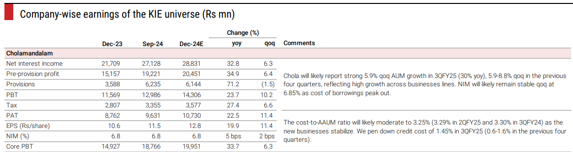 Chola maintains a strong position in Vehicle Finance, particularly in used vehicles. The company faces increasing competition from banks and fintech players in unsecured lending and SME finance segments.