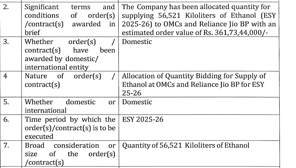 2025-26) to OMCs and Reliance f io BP with an estimated order value of Rs. 361,73,44,000