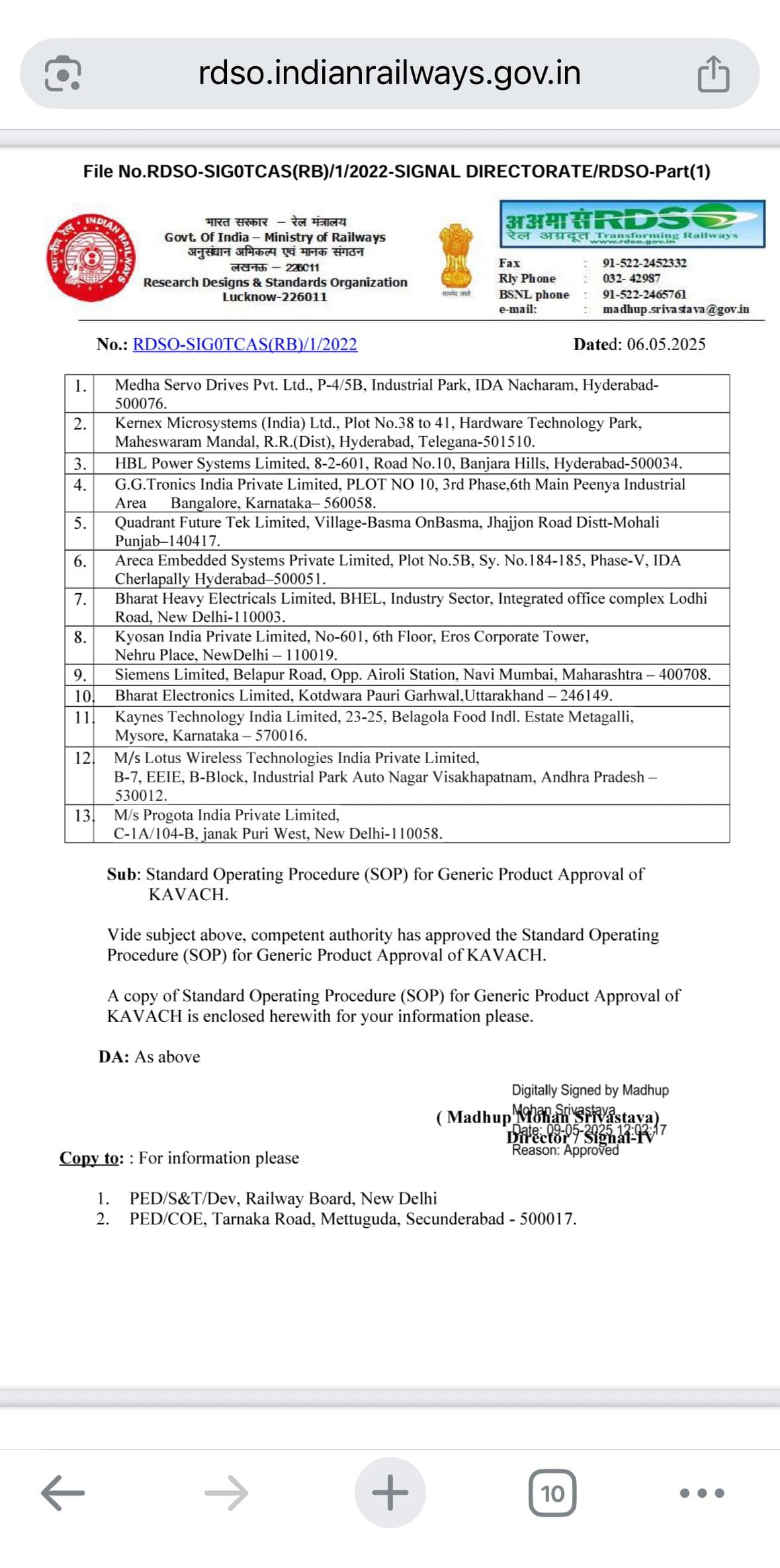 It was supposed to get field trial order for Kavach. Company said soon in last concall. Any updates any body have ? Company seems to be not updating about new orders like other SME company does. Any one tracking or holding the company have any updates ? Its employee strength is increasing and same is in its subsidiaries and associates as well