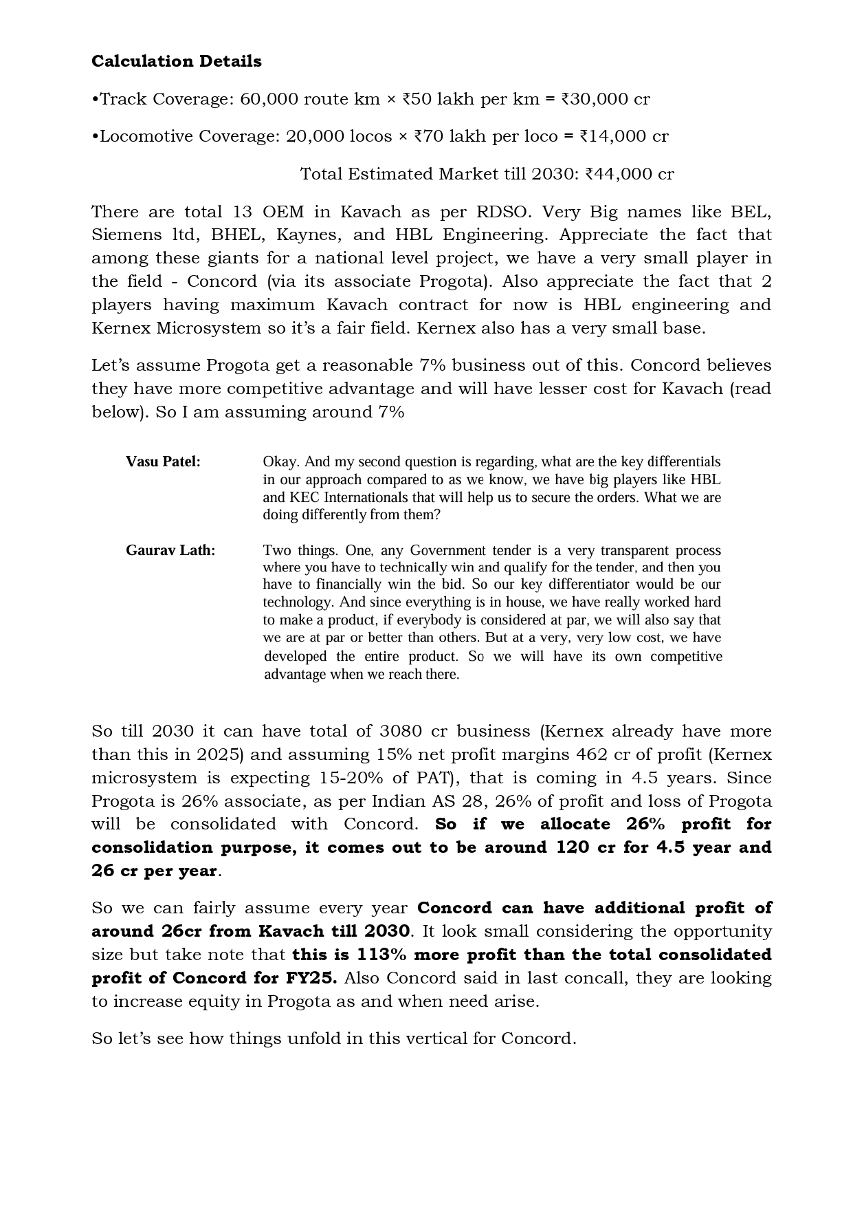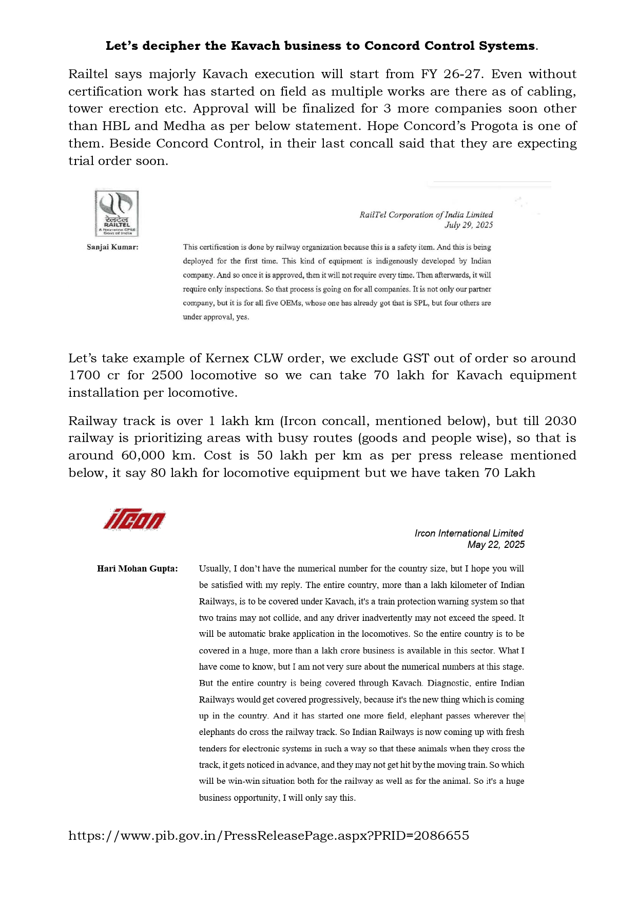 This looks quite good and achievable. Presented quite well. Concord is really expanding its horizon. Any one got any recent interaction with CS or management ? When is Kavach 4.0 of progota getting approval ? Between 3/5 bonus declared by company.