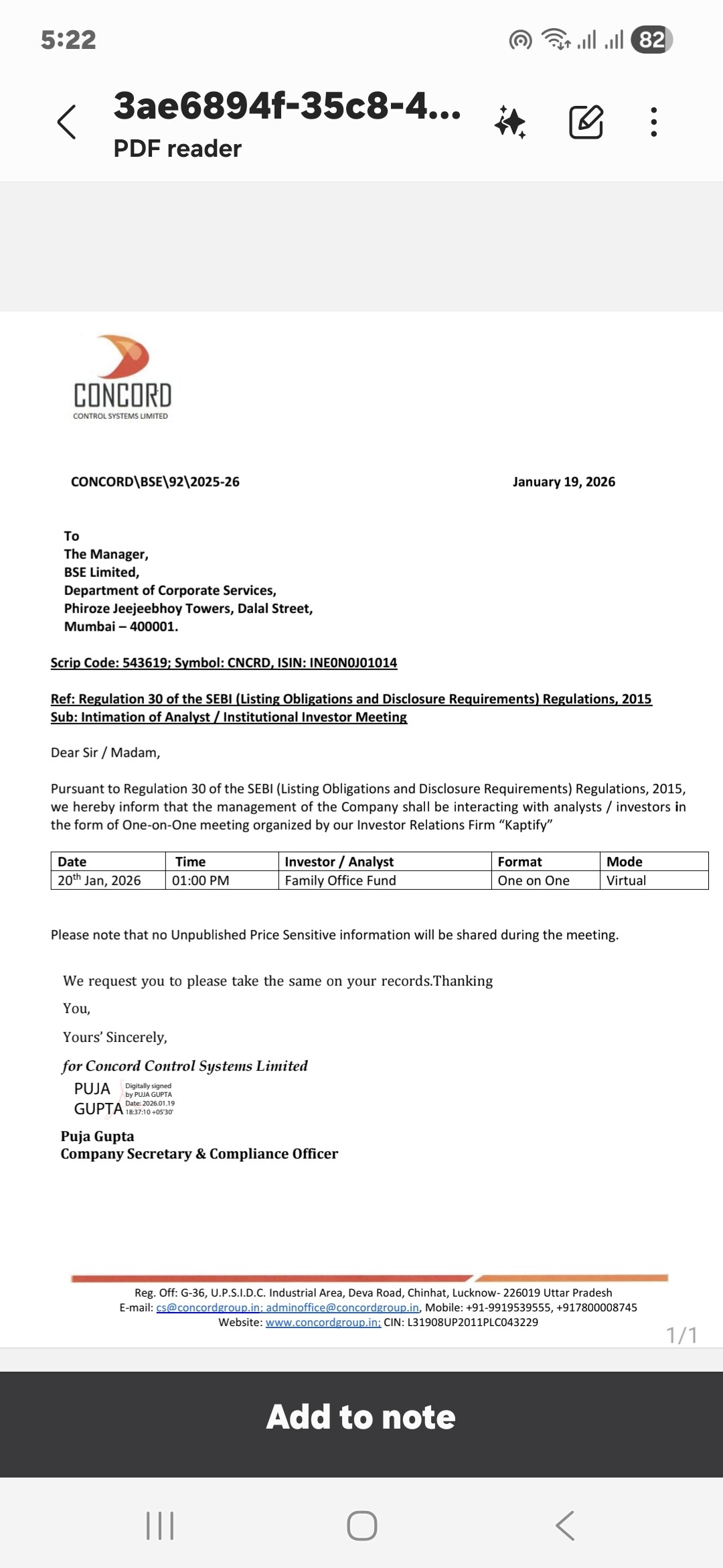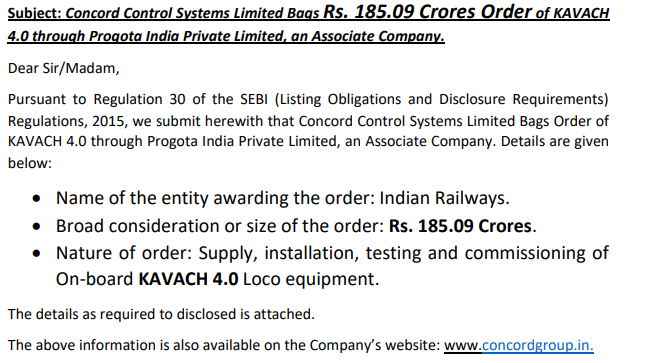 Soon stake will be increased in Progota to above 50% to make it wholly subsidiary. Every possibility that if Kavach trial order completes by March 2026 , then by Fy27 Concord post a consolidated revenue of around 400 cr. With huge DPWCS order book + this big kavach order can easily make it to 400 cr.