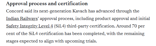 In one of the prior conference calls (May 2025) the management had indicated that they are working on SIL4 certification in parallel with Kavach RDSO approval. Therefore, it’s already been few quarters that SIL4 certification has been under works.