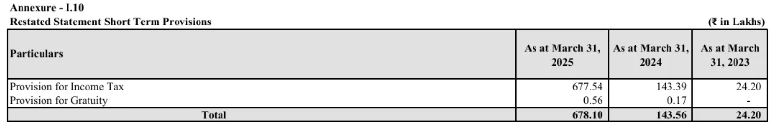Provision for Income Tax (Under Short term Provision) as on H1FY26 on B/S = 4.52cr