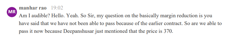 Since the majority of players import aluminum foil from China, we believe this is an industry-wide issue. Most players will now be compelled to source material from Hindalco—the sole domestic producer—or turn to alternative suppliers in Korea or Europe. Consequently, the incremental cost increase of 5–6% is likely to be passed on to customers. Moreover, pricing in this industry is typically reset on a monthly basis, which helps mitigate any significant margin risk or pressure