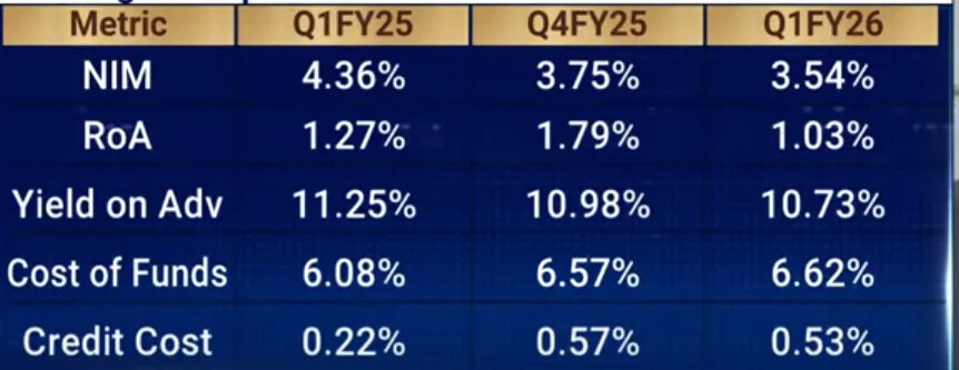That said, the quality of earnings looks a bit mixed. Provisions have shot up ~3x, which is concerning, and PAT growth was muted at just ~4%. Most of the bottom-line support this quarter has come from other income, while core profitability was weighed down by higher credit costs.