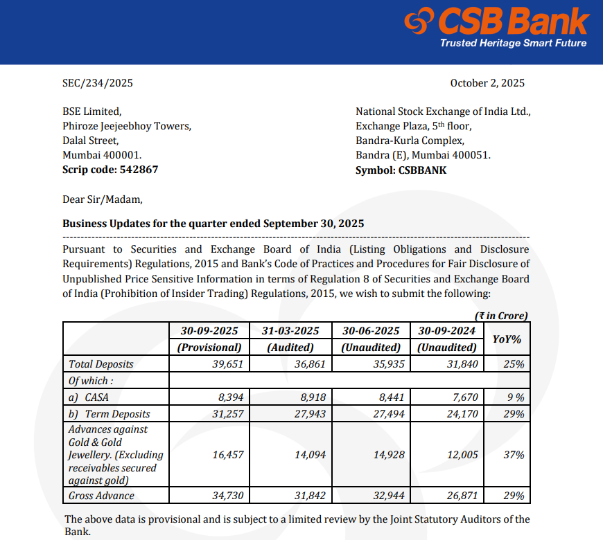 Overall, the quarter feels āokay-ishā ā good loan growth, strong gold traction, but profits dampened by higher provisions. Itās a transition story, and the real compounding will depend on how quickly CSB can stabilize asset quality and scale beyond its gold-loan comfort zone.